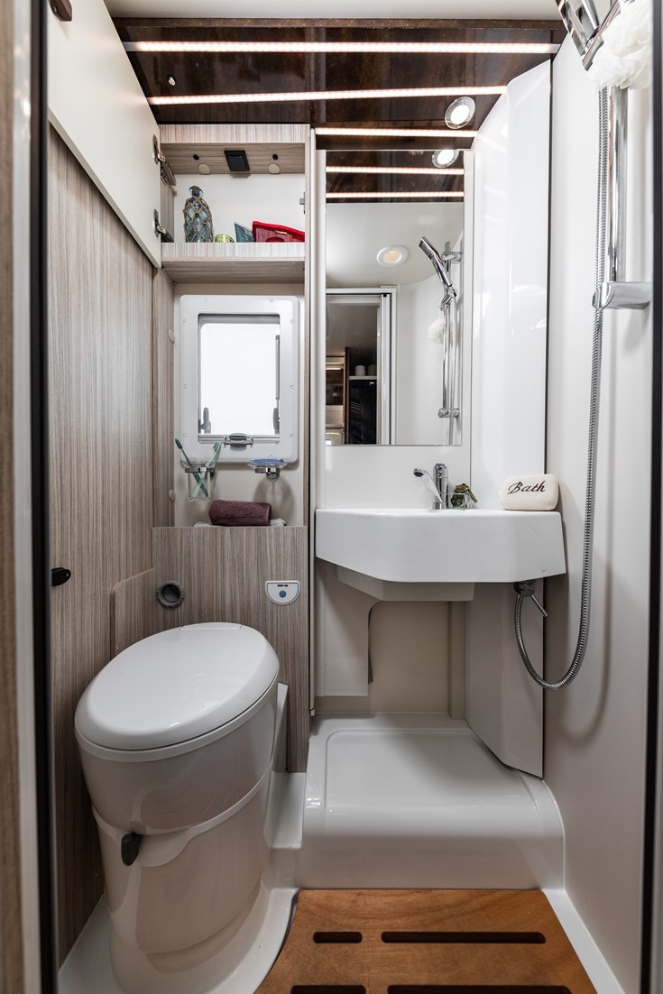 Come sempre, il consiglio prima dell’acquisto del tuo camper è valutare con attenzione le soluzioni adottate, anche mimando i movimenti che si fanno abitualmente nella doccia, davanti al lavabo sciacquandoci il viso o per il wc, sedendo sul coperchio della tazza. A volte questi semplici gesti possono evitare una scelta insoddisfacente.